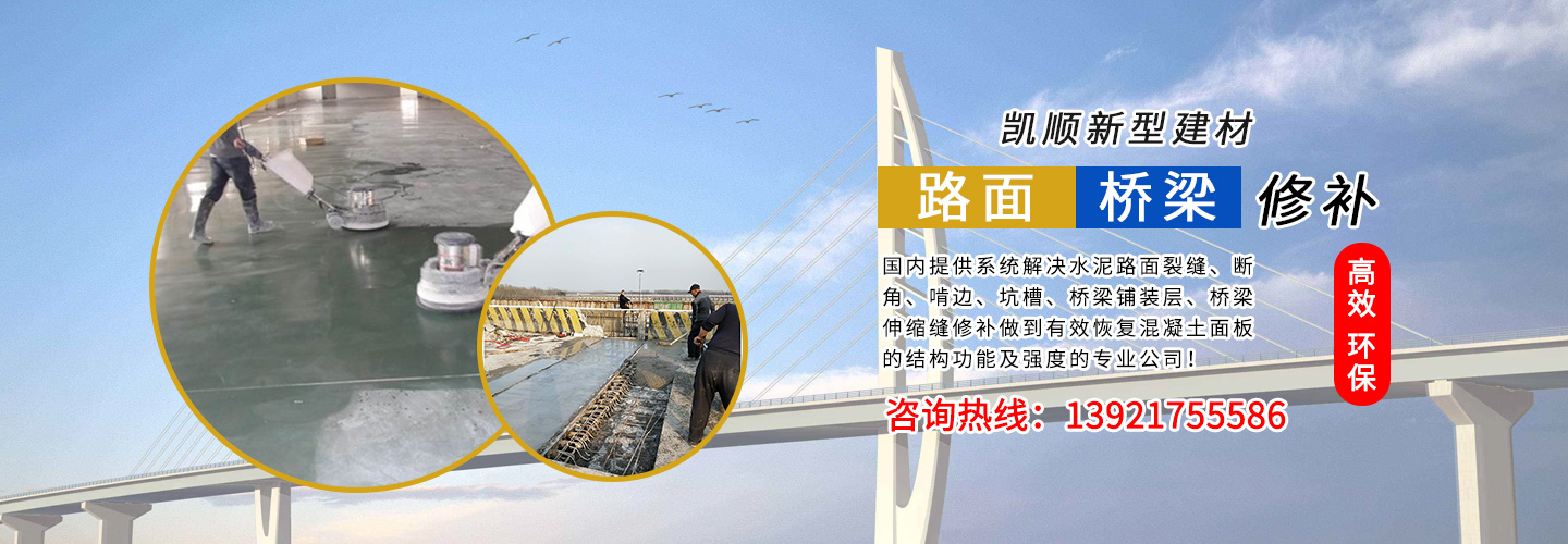 江蘇凱順新型建材有限公司是國(guó)內(nèi)提供系統(tǒng)解決水泥路面裂縫、斷角、啃邊、坑槽、橋梁鋪裝層、橋梁伸縮縫修補(bǔ)做到有效恢復(fù)混凝土面板的結(jié)構(gòu)功能及強(qiáng)度的專業(yè)公司!為市政工程、高速、國(guó)道、省道、縣鄉(xiāng)道路的改造及大修、中修等大型工程提供了快速、高效、環(huán)保、經(jīng)濟(jì)系統(tǒng)方案和技術(shù)支持!